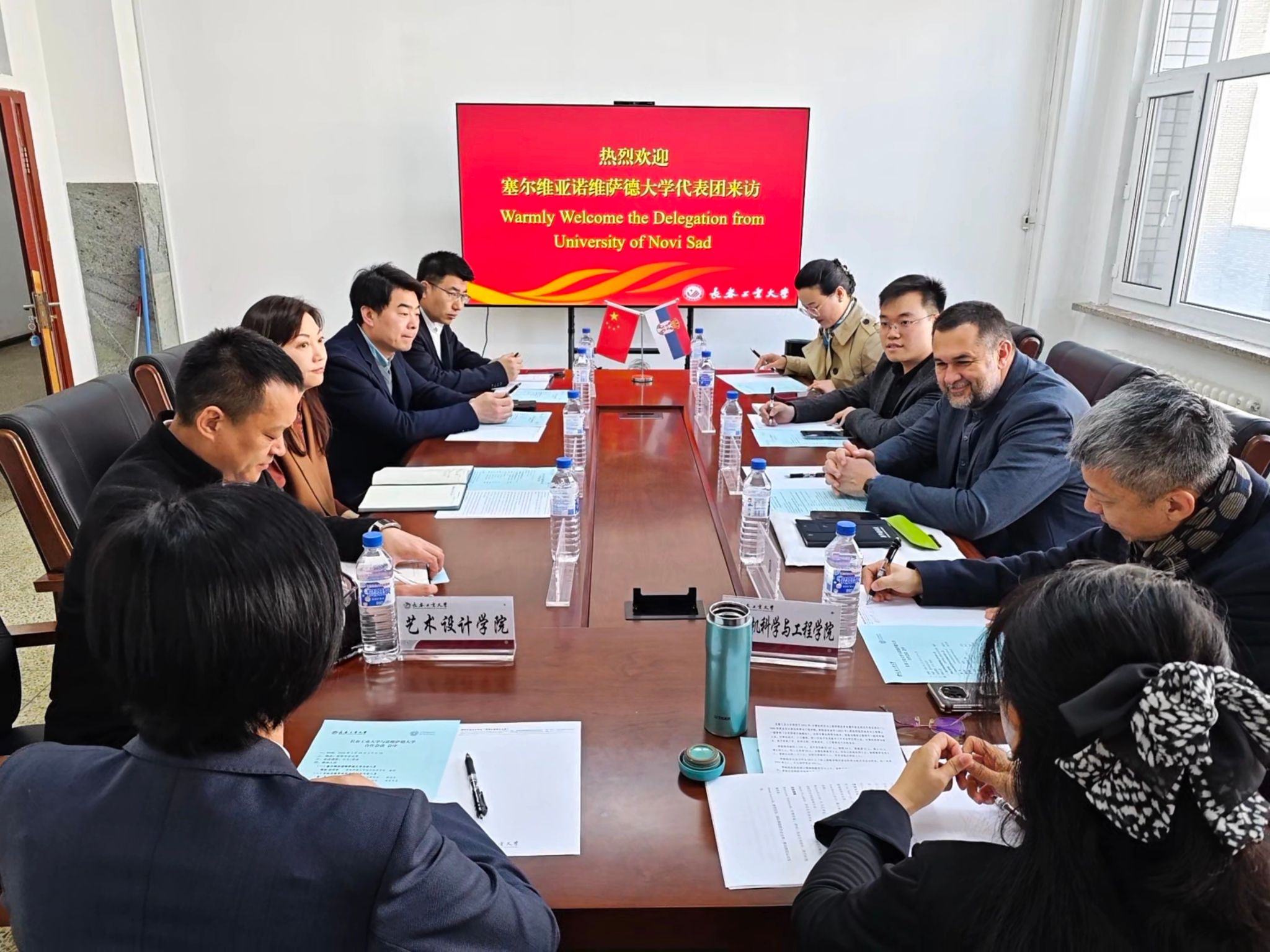 3月28日上午,塞尔维亚诺维萨德大学技术科学学院博扬·拉利奇教授访问我校,双方举行首次正式会面,围绕中外合作办学、学科对接及师生交流等议题进行深入洽谈。吉林省教育国际交流协会副会长管见、我校机电工程学院院长郝兆朋、艺术设计学院院长葛莹颖、电气与电子工程学院副院长孙中波、计算机科学与工程学院副院长鲁慧民、我校国际交流与合作处处长王轶、副处长王鑫及相关工作人员参加会谈。